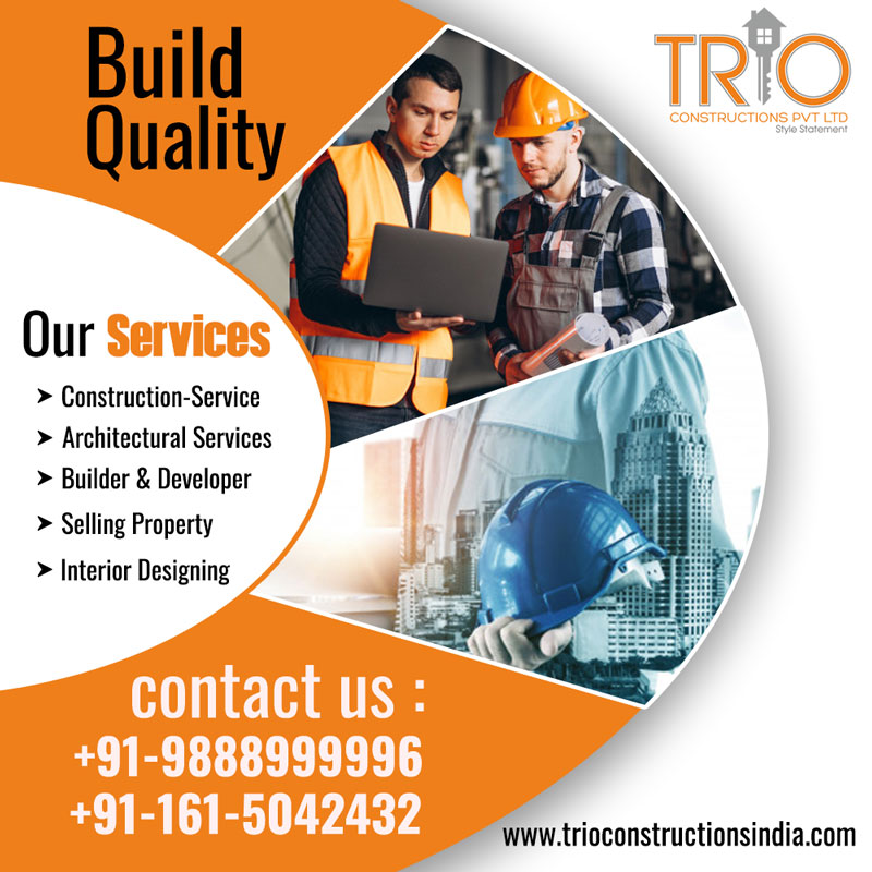 Amongst a variety of purported Best Property Dealers in Ludhiana, Punjab, the name of Trio Constructions Pvt. Ltd has been clearly recognized for its par excellence holding services. We’ve attained the name as reliable Property Dealer in Punjab. providing building & development services for various sorts of Residential Properties. We’ve all the required instrumentality and therefore the requisite personnel comprising of employees, laborers, engineers, managers and web site supervisors United Nations agency square measure capable of constructing glorious structures. We offer complete solutions and develop buildings that have all the facilities.